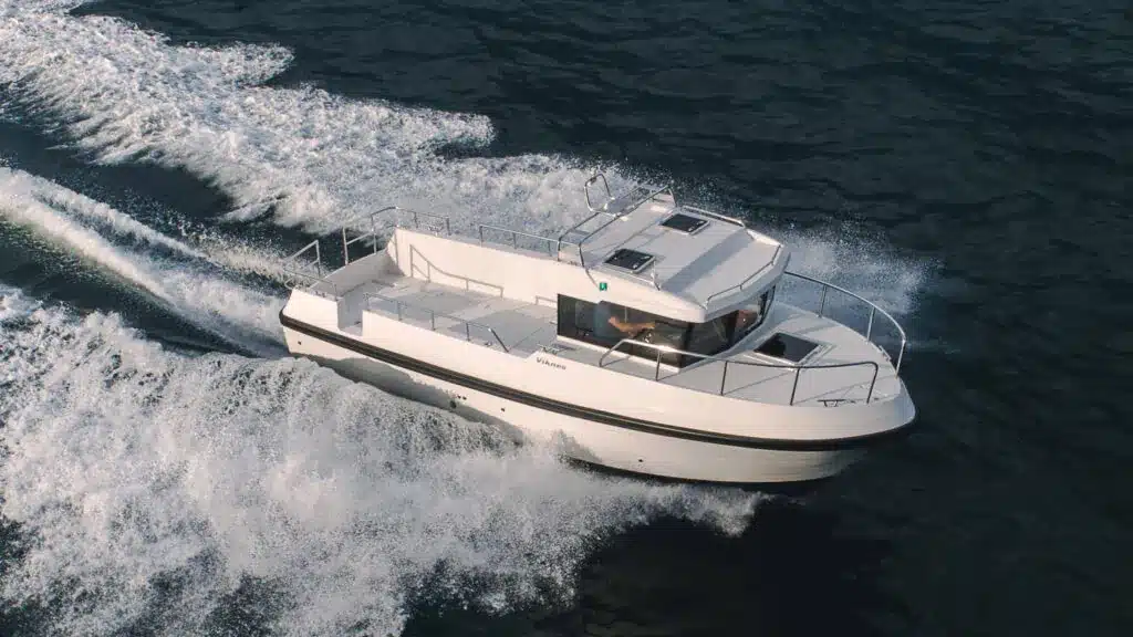 De Viknes 8 is het kleinste model en is met zijn krachtige Yanmar 250pk motor een pittige jacht met kracht en uithoudingsvermogen. De normale uitvoering heeft voldoende luxe die men verwacht bij een jacht als deze. Uiteraard zijn er menig opties bij te kiezen om deze polyester krachtpatser compleet eigen te maken!